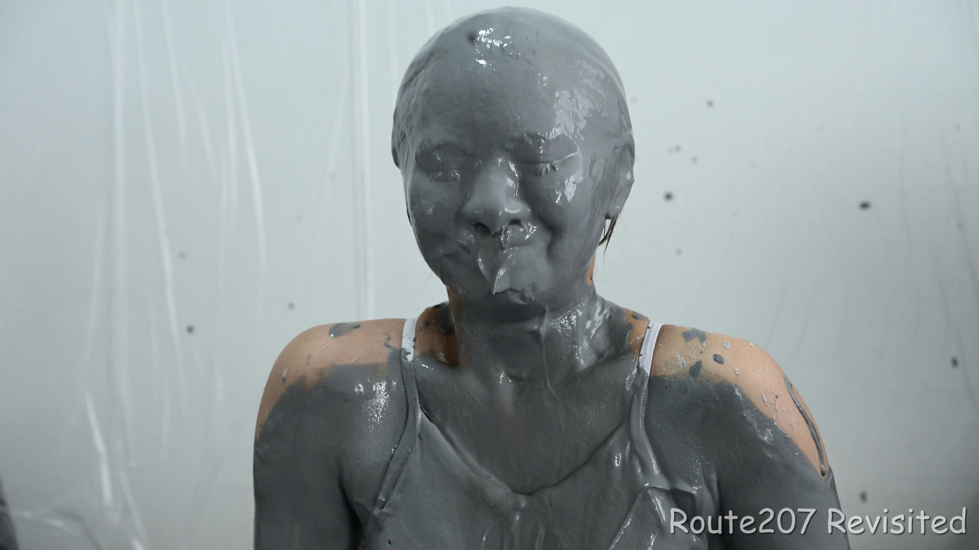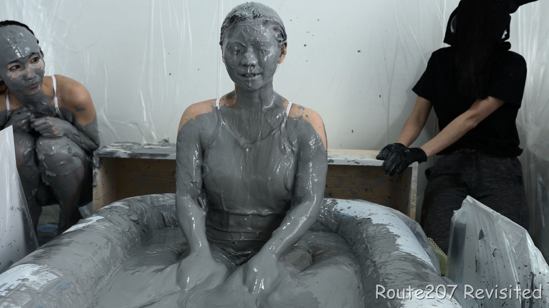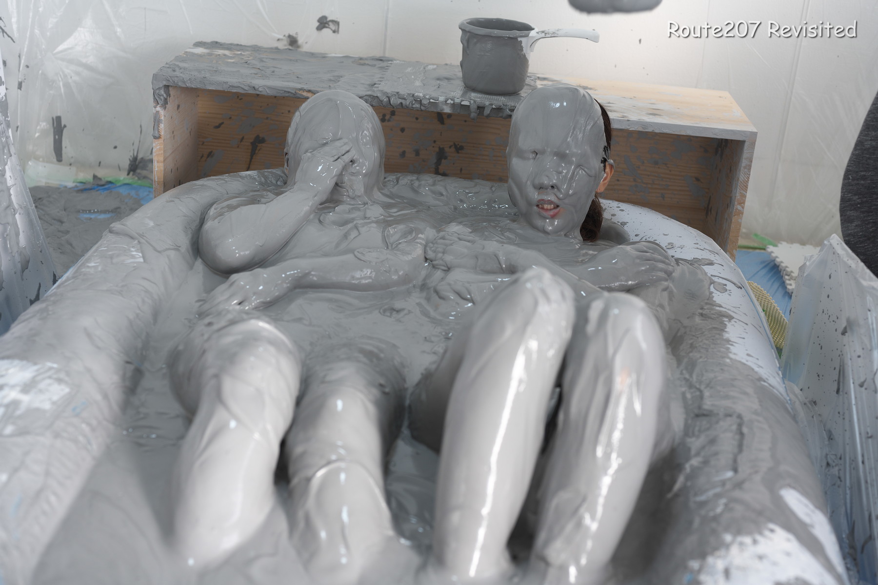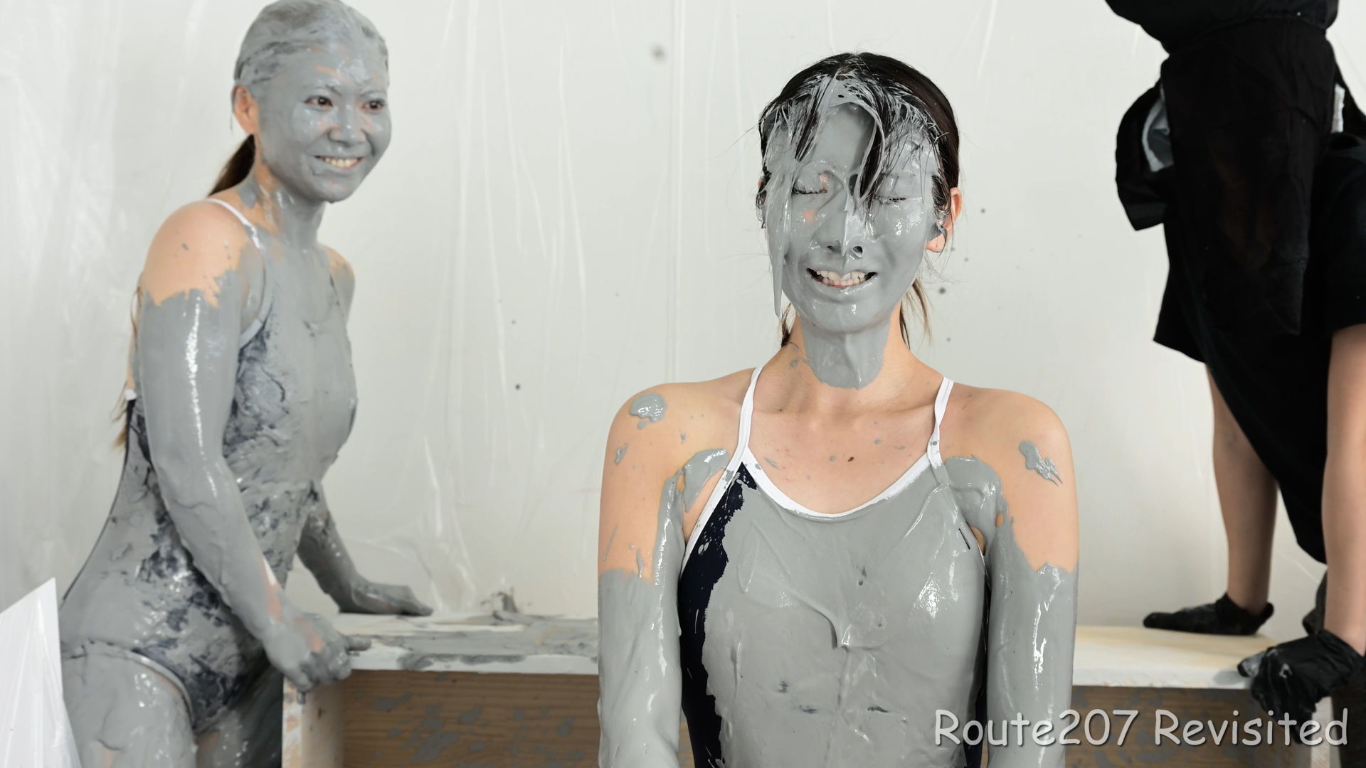 スペースの制約から泥落ちはコツが必要で、それほど豪快ではありません。派手に落ちて一度だけで体の前面にまんべんなく泥が付くという感じではありませんので、その点はサンプル動画とキャプチャ画像もご覧ください。お二人ともこれまで何度も作品に参加してきた方ですが、泥プールのセットとクイズのシチュエーションはとても新鮮だったようで、「これまでの撮影でいちばんドキドキしたかも」、「バンジージャンプのときより心臓バクバクしてるかも」と言っていました。