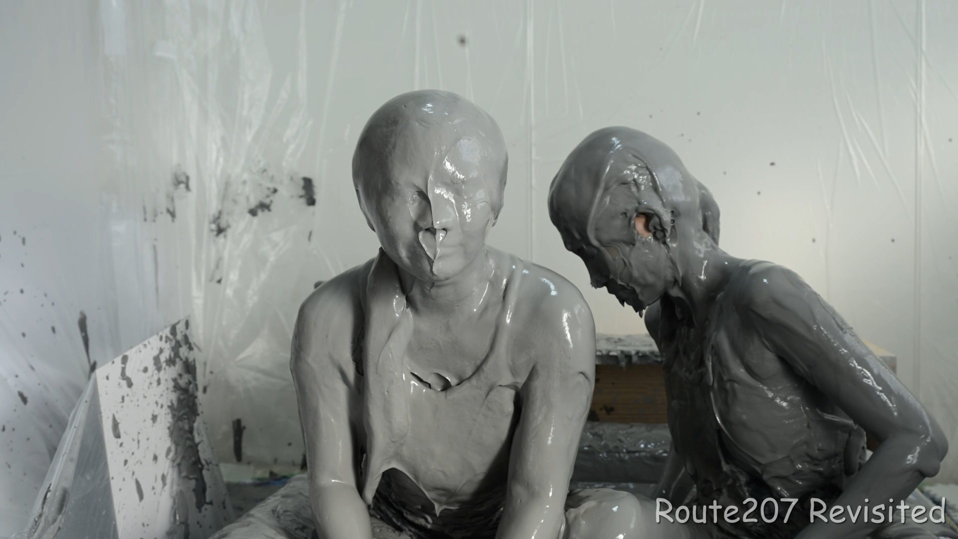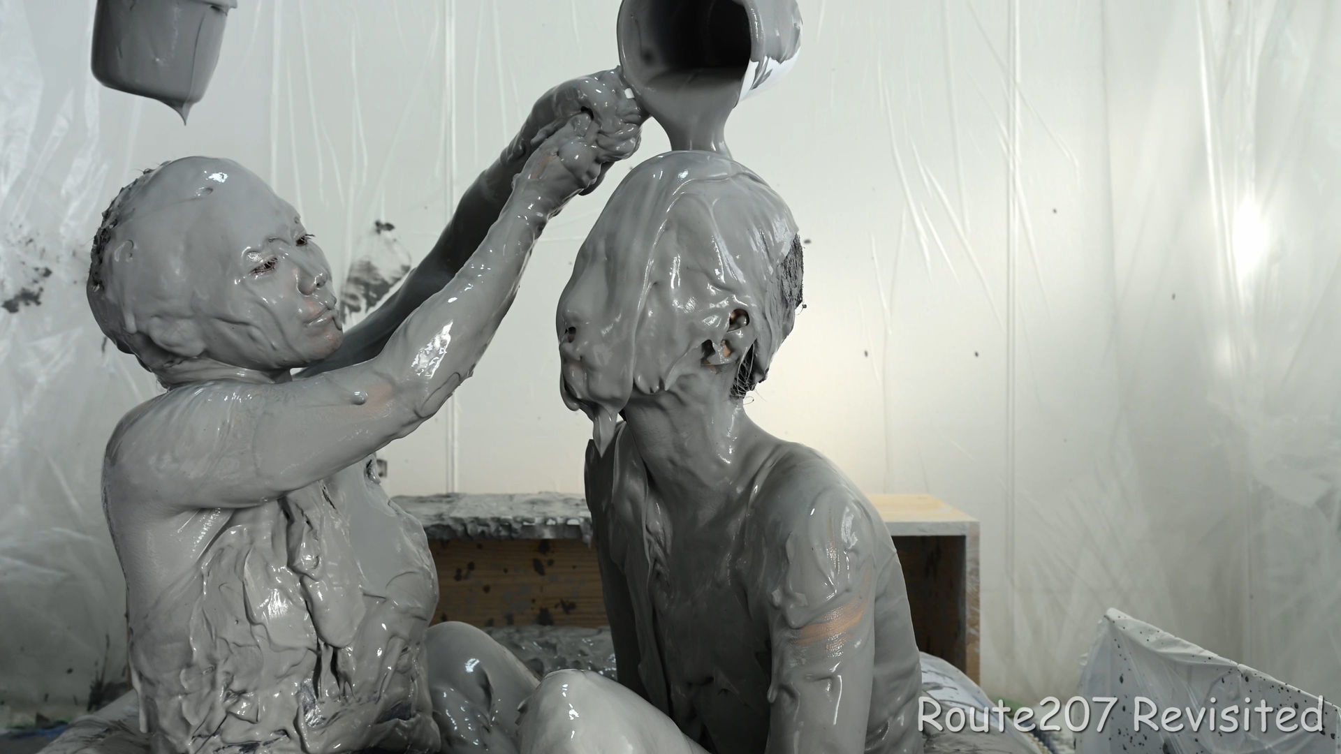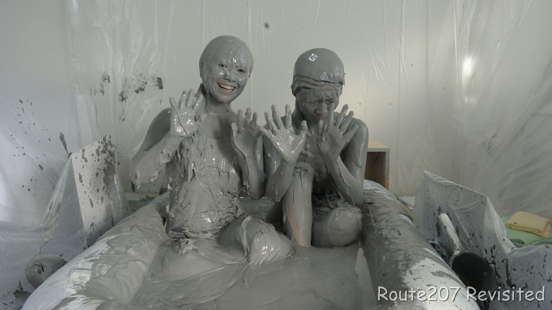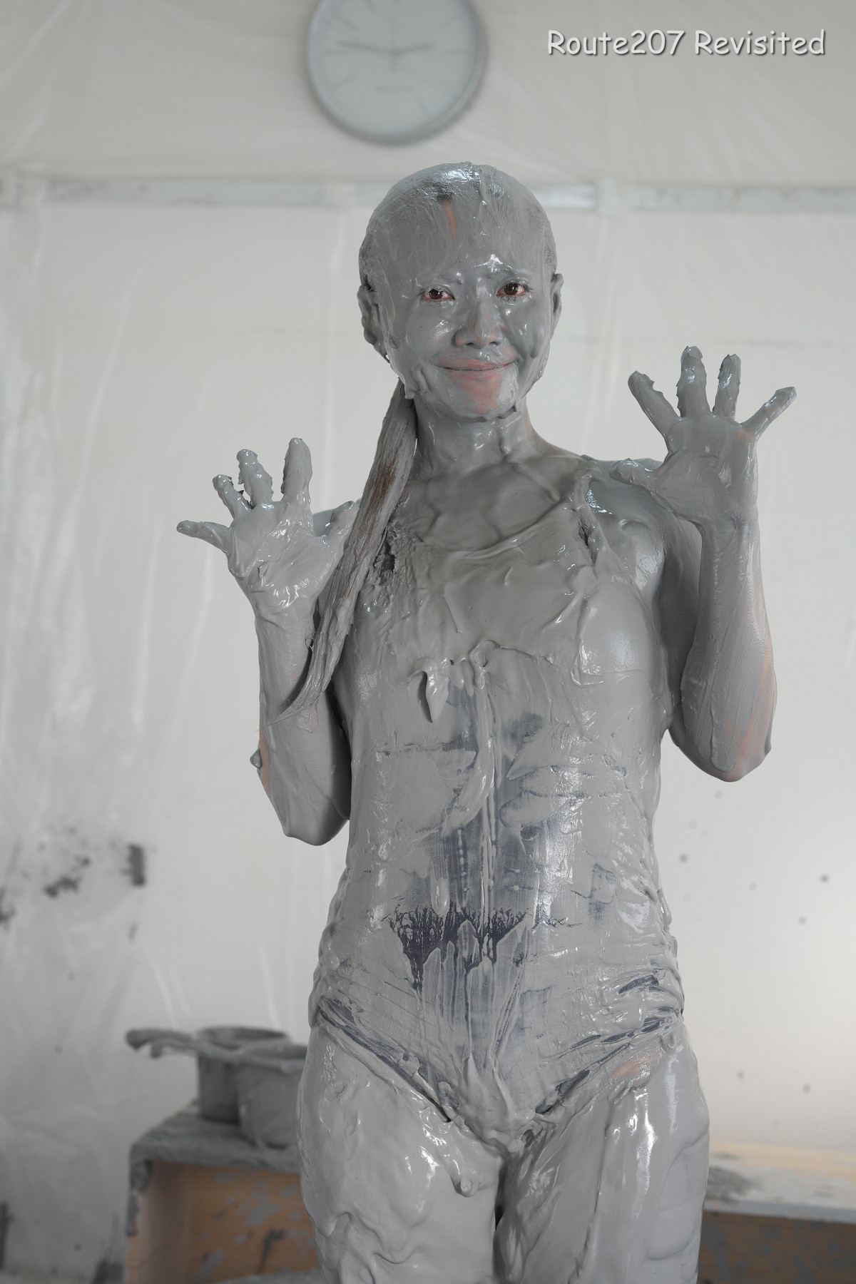 スペースの制約から泥落ちはコツが必要で、それほど豪快ではありません。派手に落ちて一度だけで体の前面にまんべんなく泥が付くという感じではありませんので、その点はサンプル動画とキャプチャ画像もご覧ください。お二人ともこれまで何度も作品に参加してきた方ですが、泥プールのセットとクイズのシチュエーションはとても新鮮だったようで、「これまでの撮影でいちばんドキドキしたかも」、「バンジージャンプのときより心臓バクバクしてるかも」と言っていました。