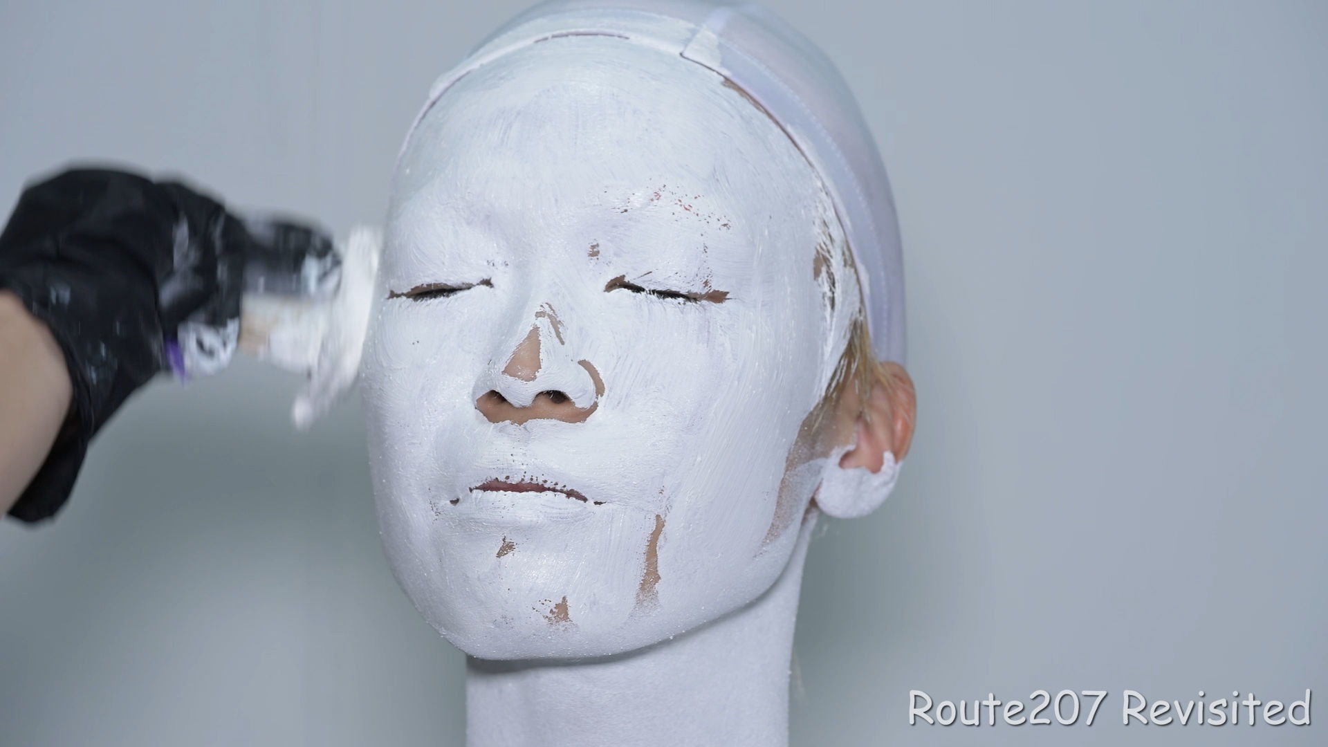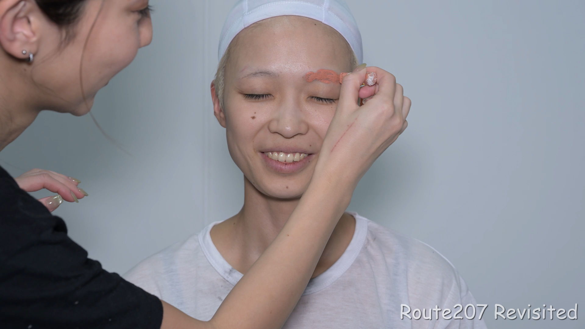 初参加のモデルさんにスティックファンデーション(黒ドーラン)による黒塗りと、練白粉による白塗りを体験していただきました。白の上からの模様はご自分で選んでいただきました。