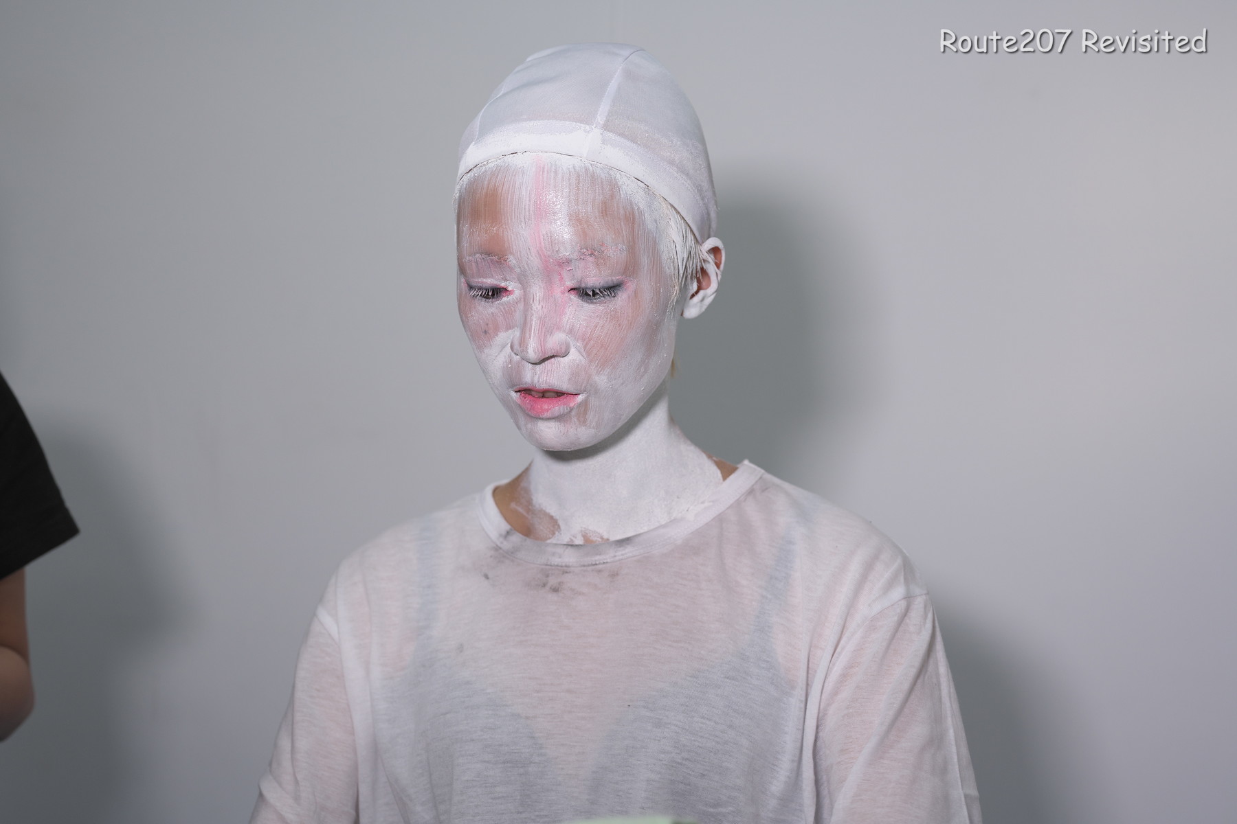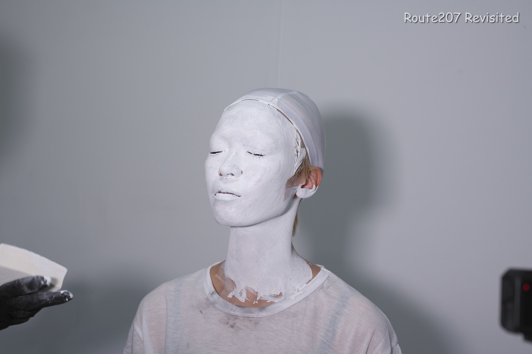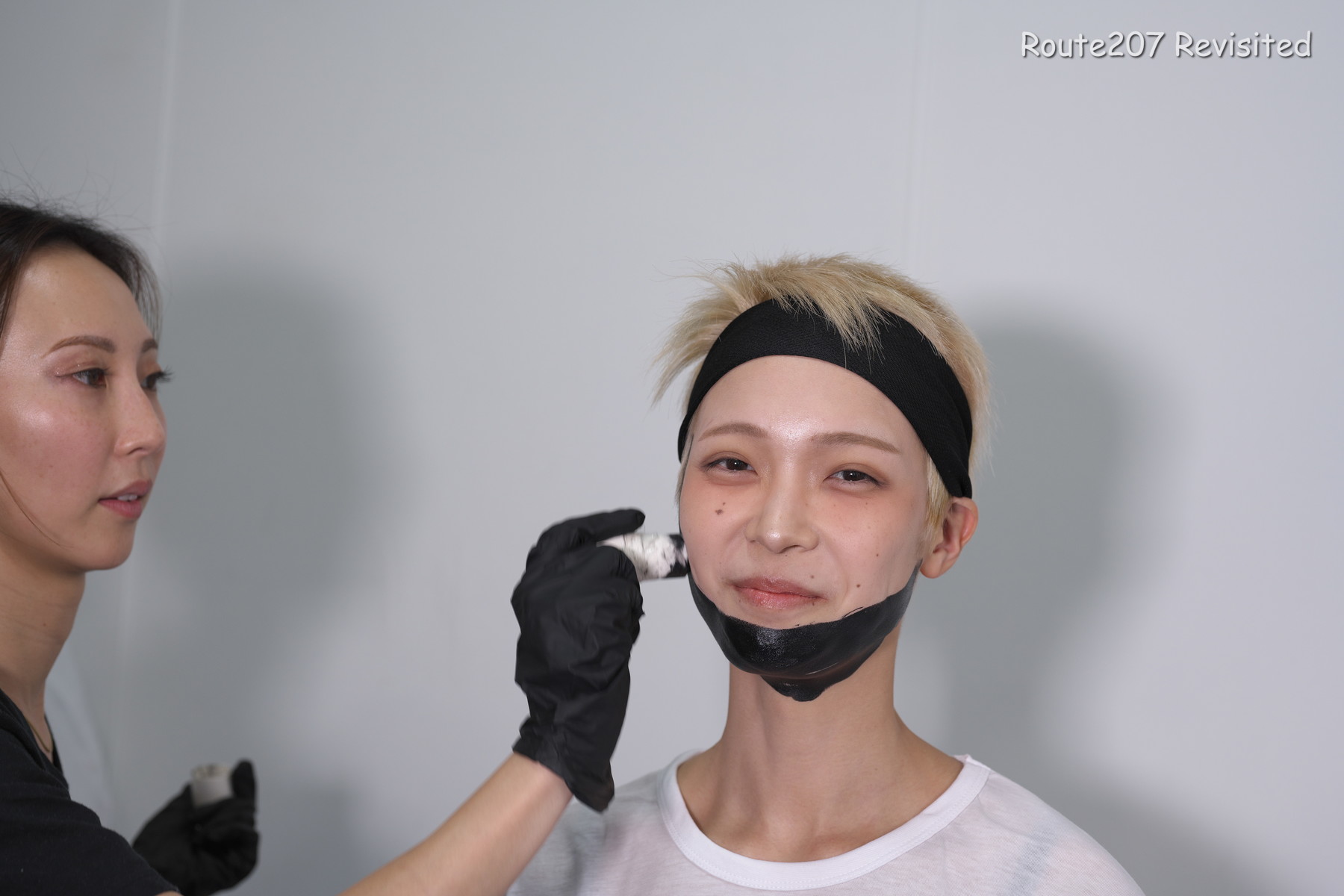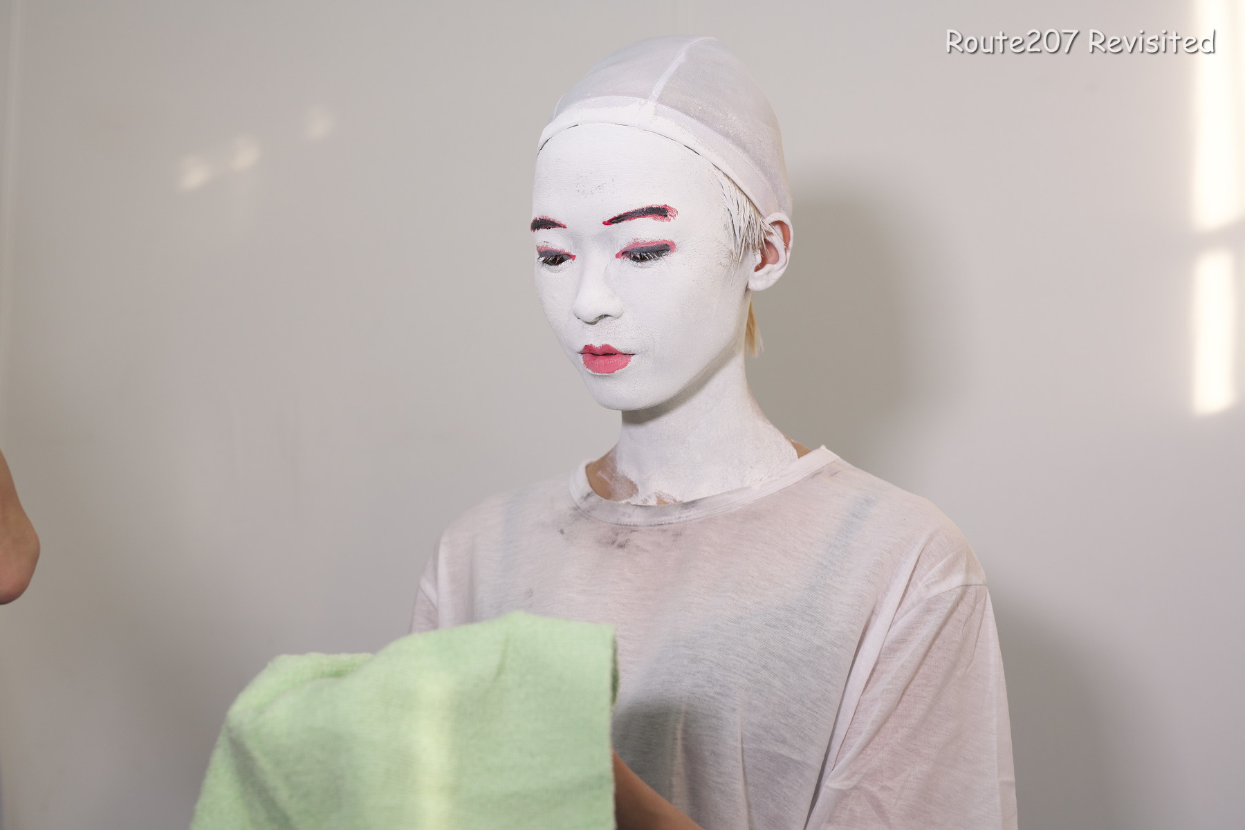 黒のほうは顔出し全身タイツも着て、まさかこんな格好ができるとは、と感動しておられました。サブタイトルの「白シャツより白い」は、モデルさんが白塗りの白さを鏡で見て言ったコメントを元にしています。