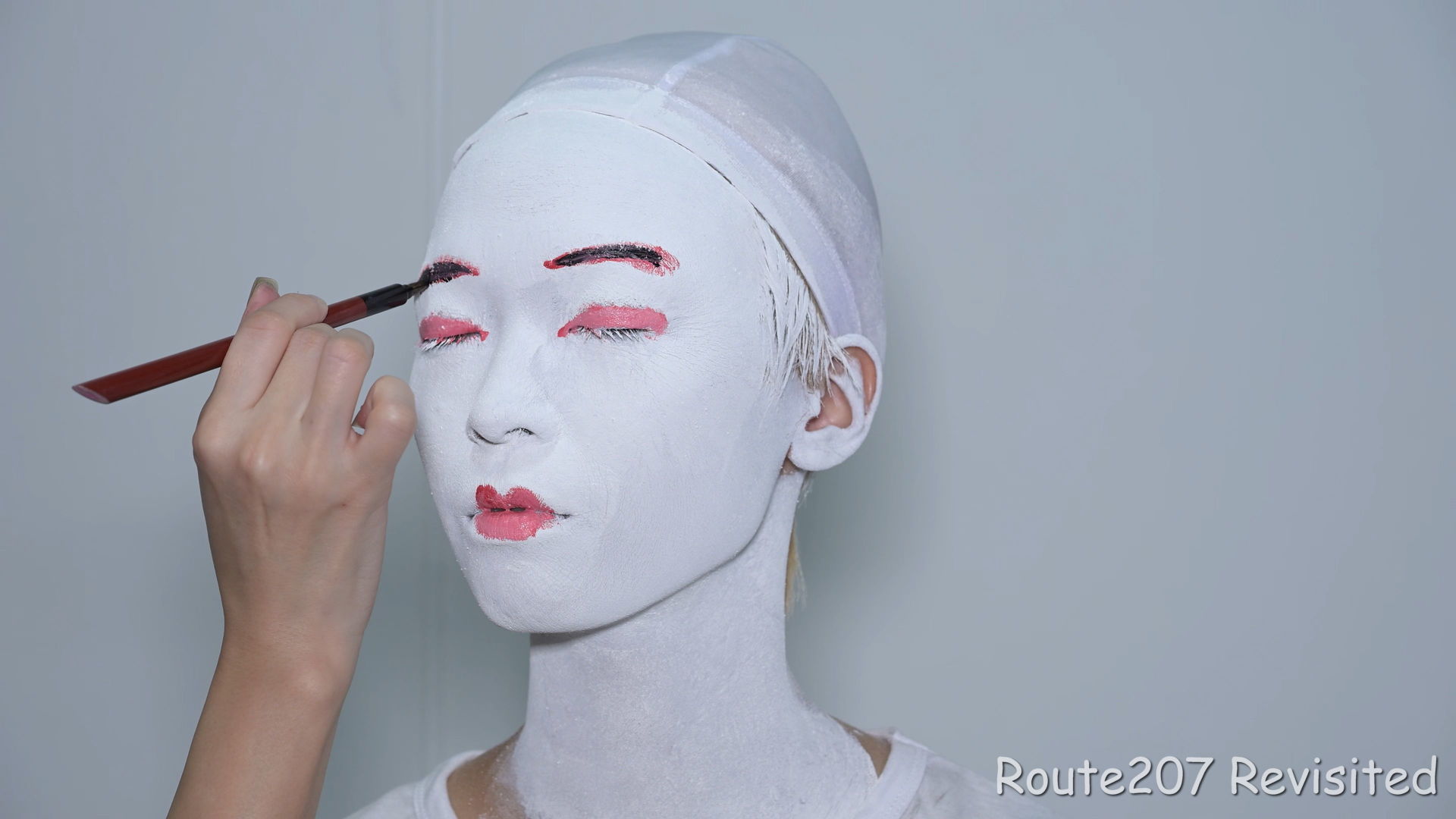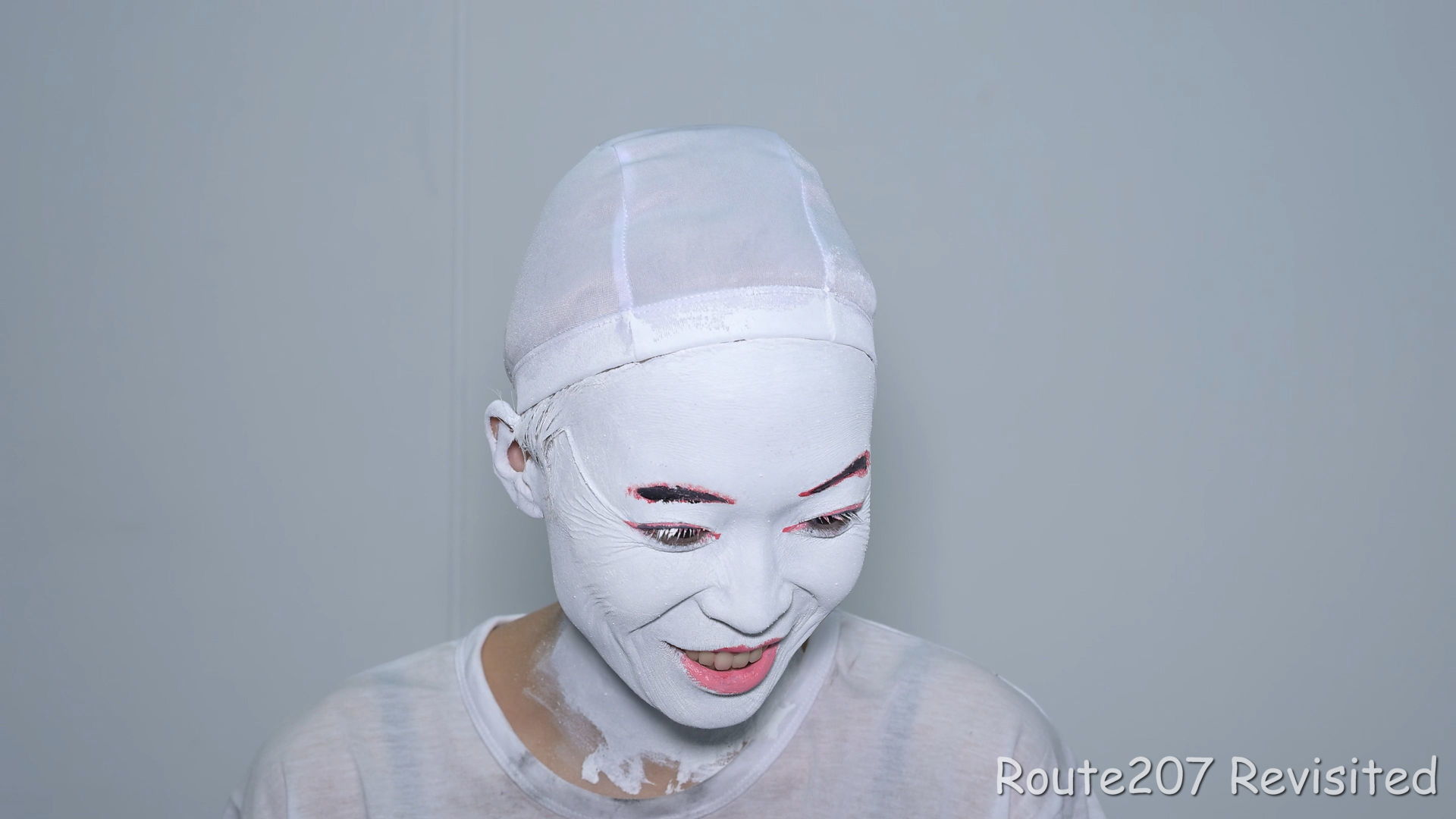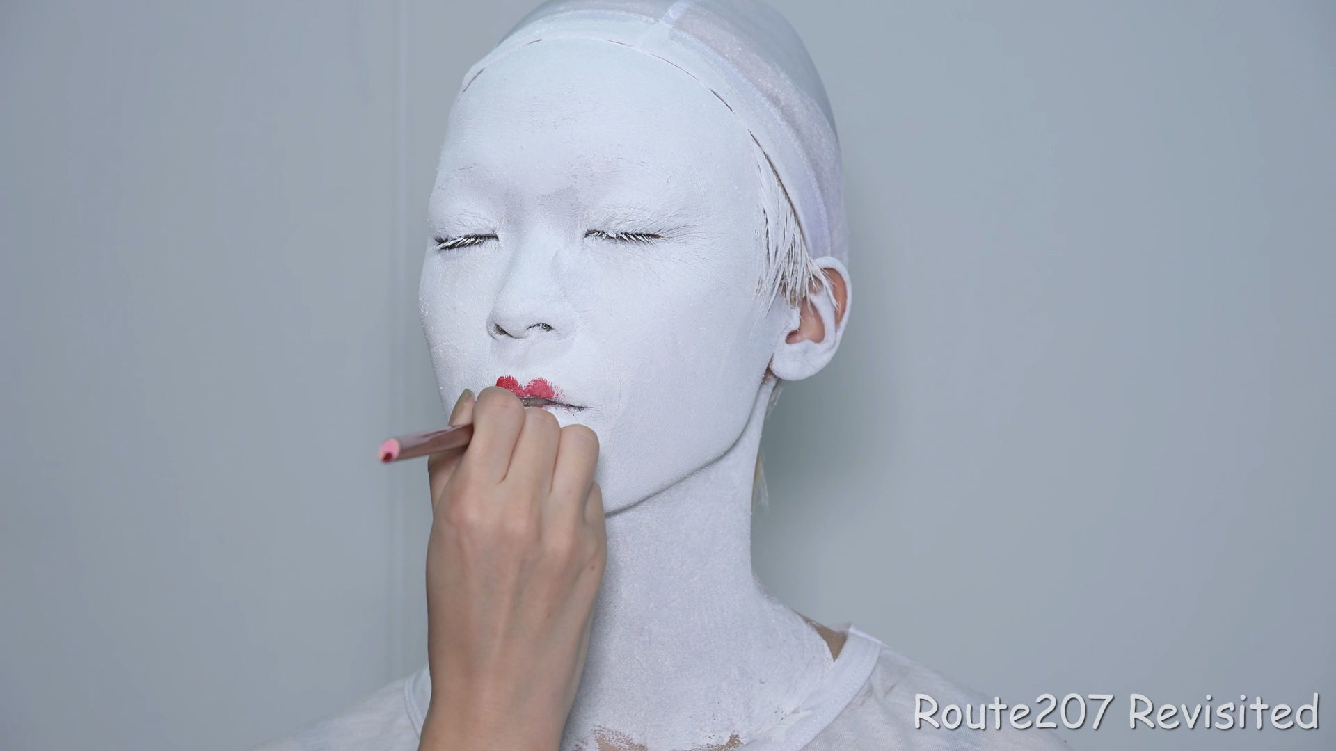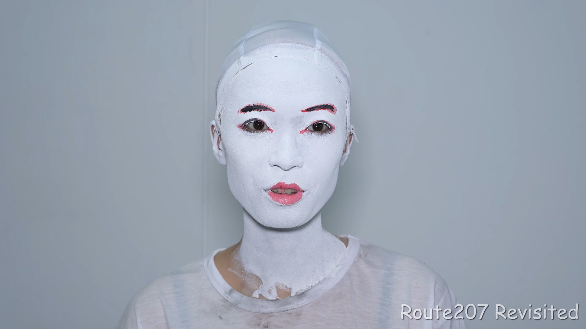 黒のほうは顔出し全身タイツも着て、まさかこんな格好ができるとは、と感動しておられました。サブタイトルの「白シャツより白い」は、モデルさんが白塗りの白さを鏡で見て言ったコメントを元にしています。